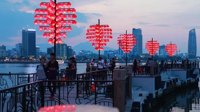 Để bổ sung thêm cho không gian lãng mạn vốn có, Cầu tình yêu Đà Nẵng được thiết kế với hệ thống cột đèn lồng mang hình trái tim đầy ấn tượng. Khi đêm xuống, những ánh đèn đỏ ấm áp đồng loạt chi sáng, tạo nên khung cảnh ngọt ngọt và nên thơ. Cột đèn này còn trở thành điểm nhấn kiến trúc độc đáo, thu hút du khách dừng chân chụp ảnh và lưu giữ những khoảnh khắc đáng nhớ.